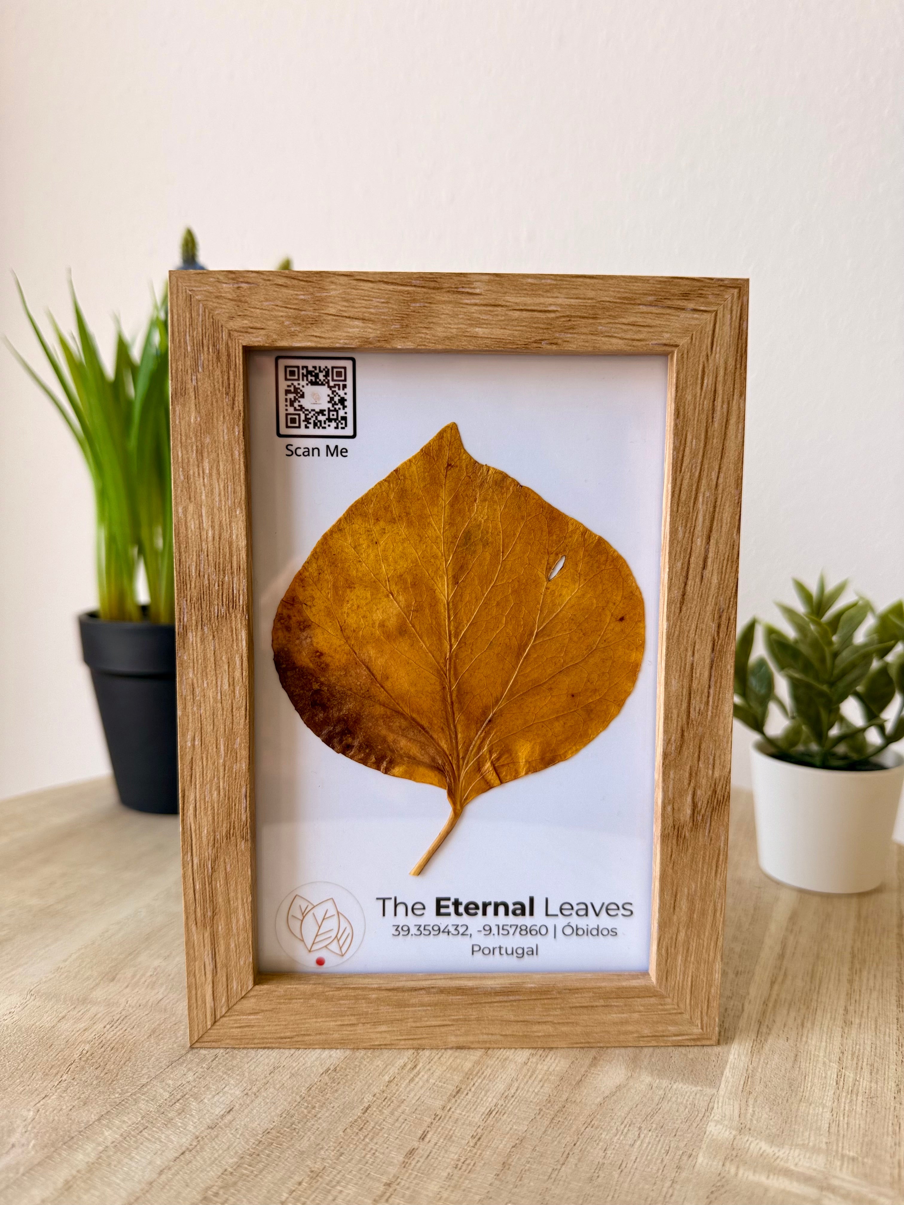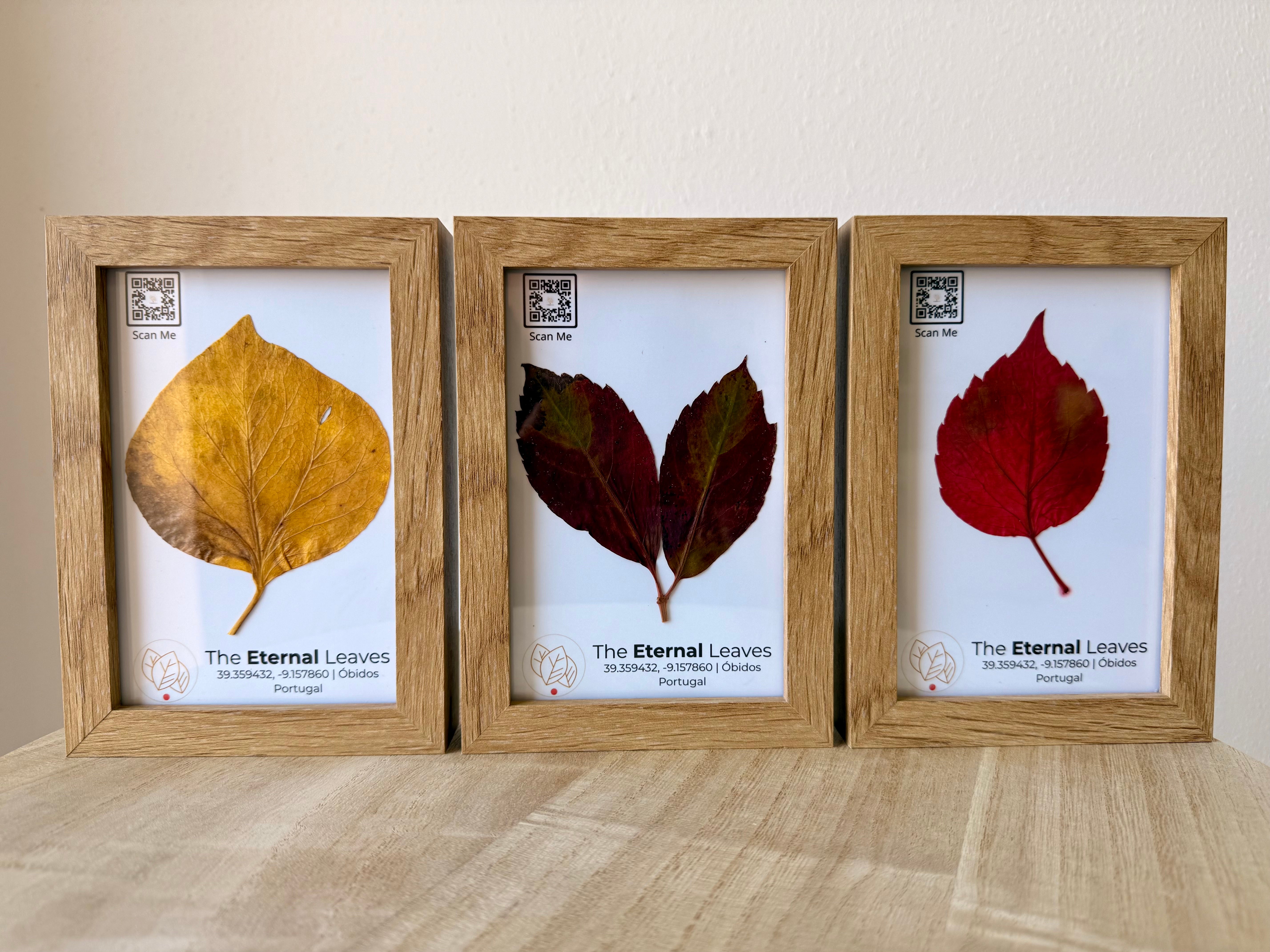 Da vila medieval de Óbidos à serra do Gerês, cada folha é recolhida à mão e transformada numa moldura artesanal que eterniza a natureza.